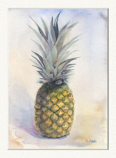 事前に紹介しきれなかった水彩画出品作です。「パイナップル」35x25cm